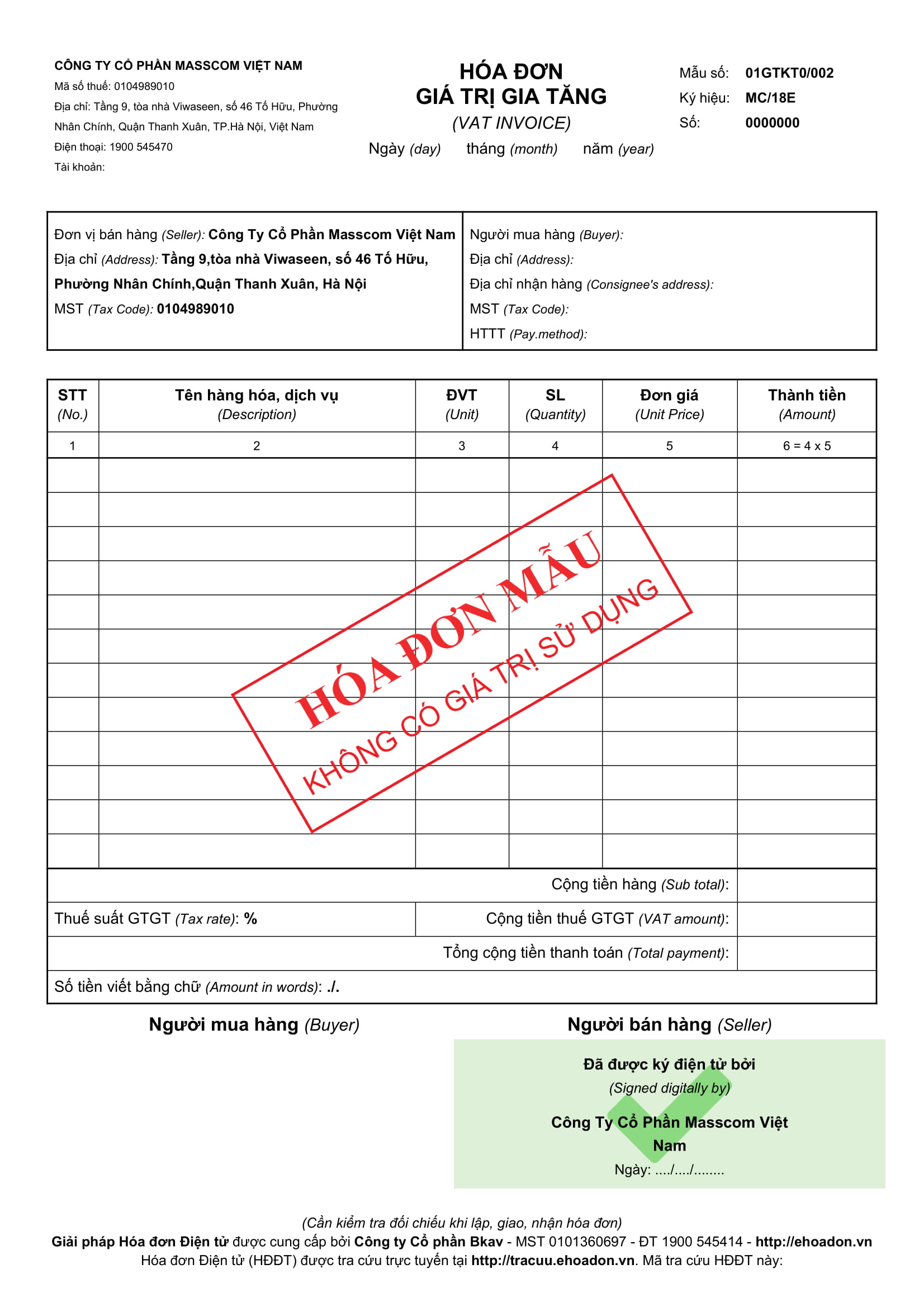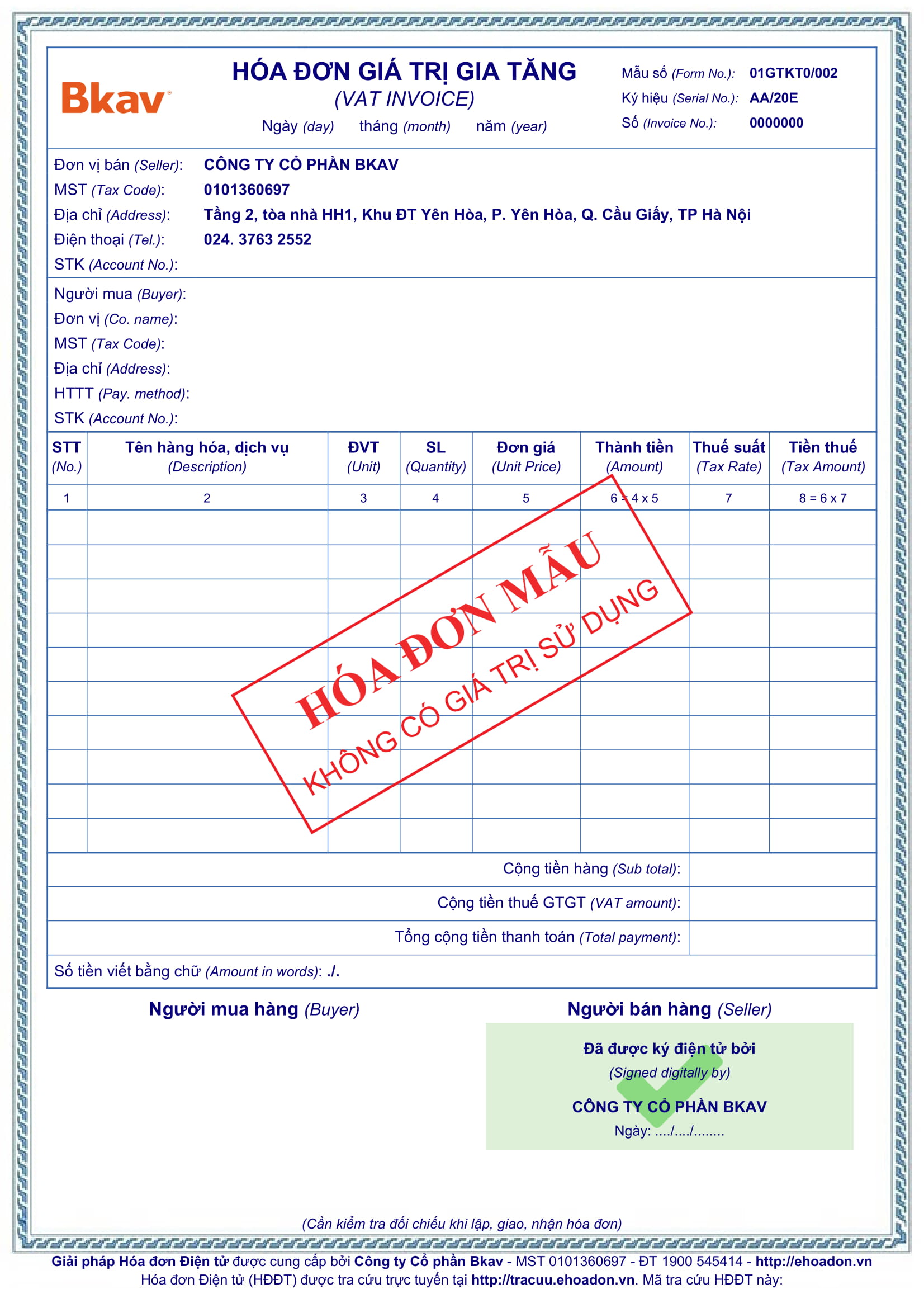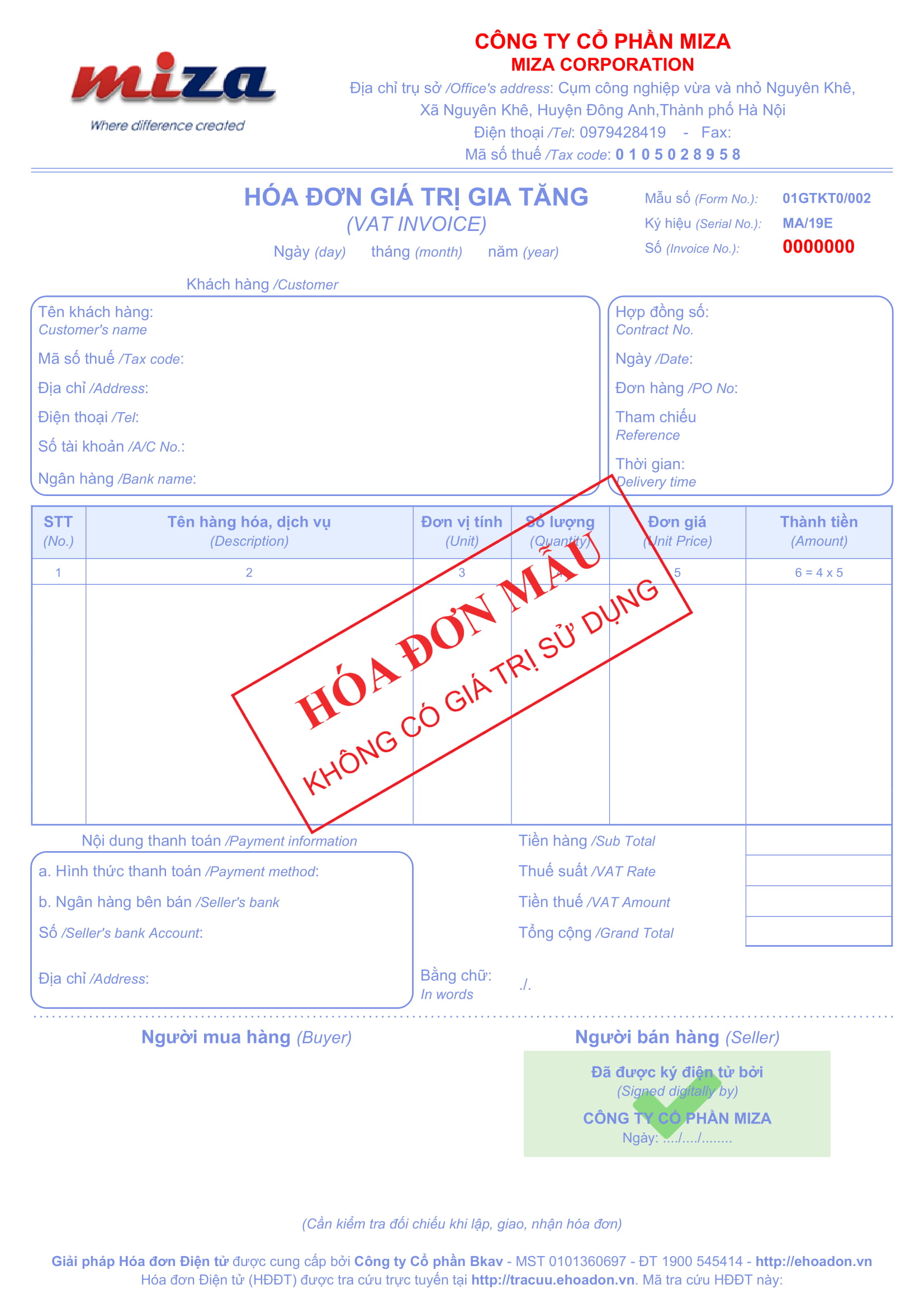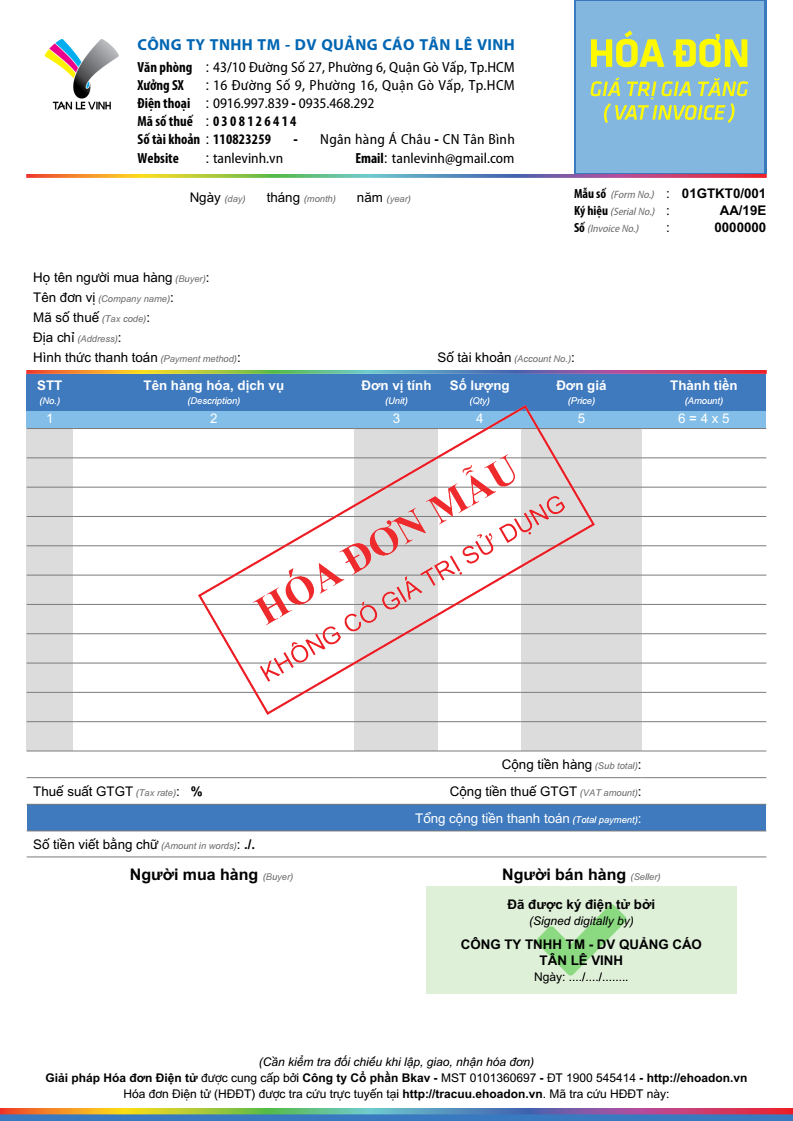 Mẫu hóa đơn miễn phí