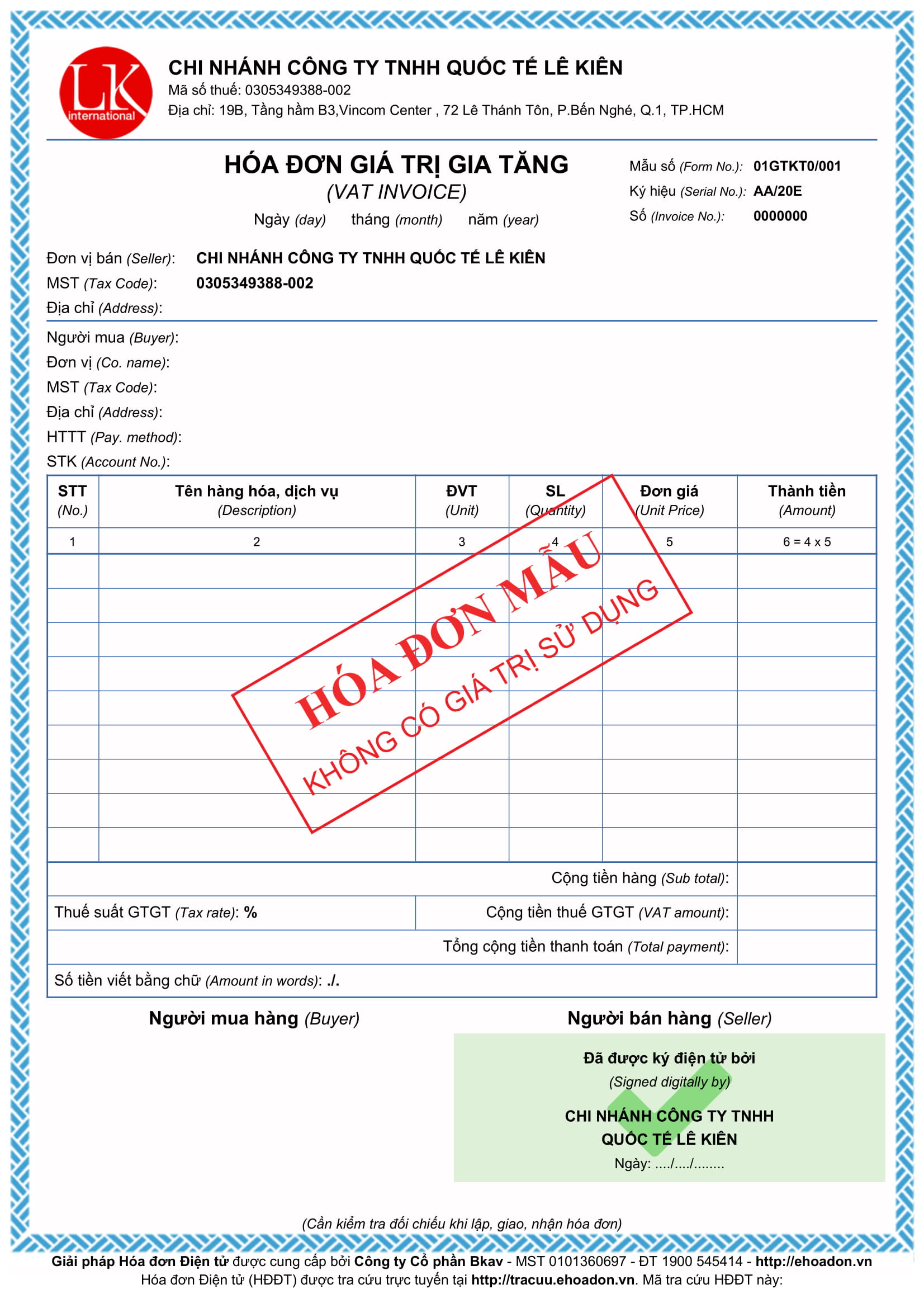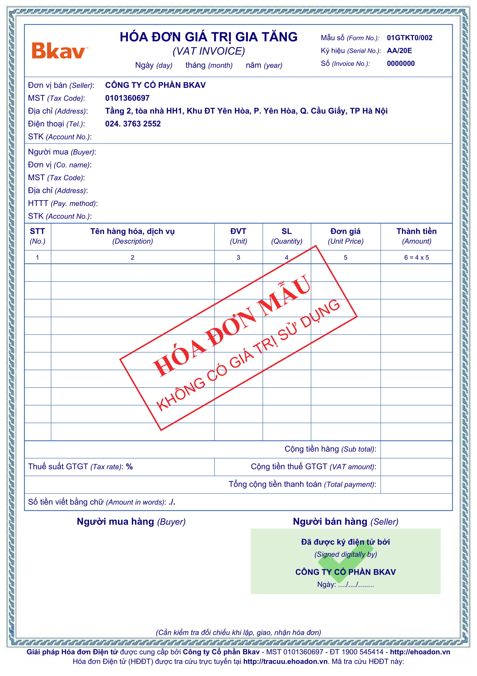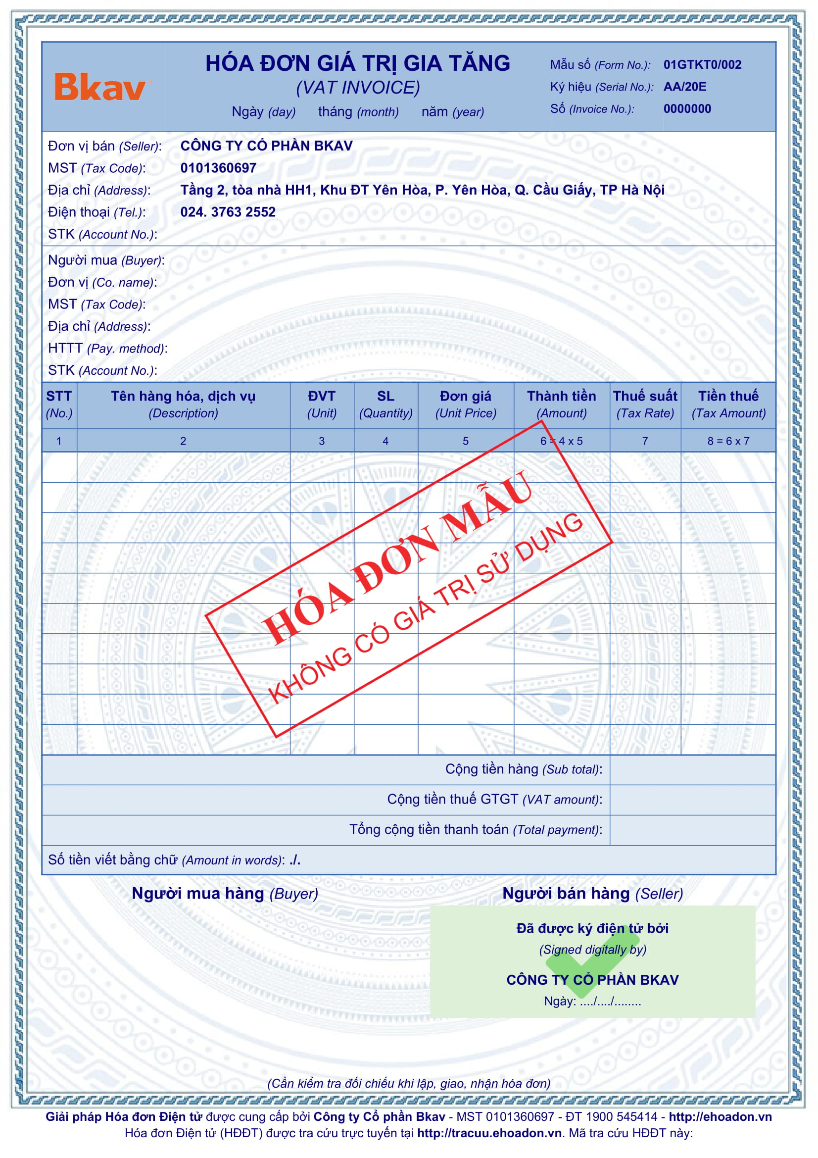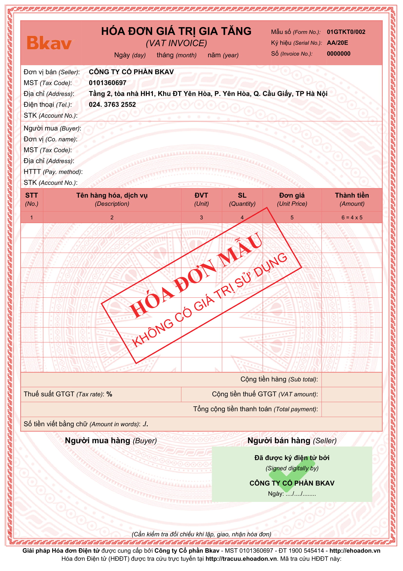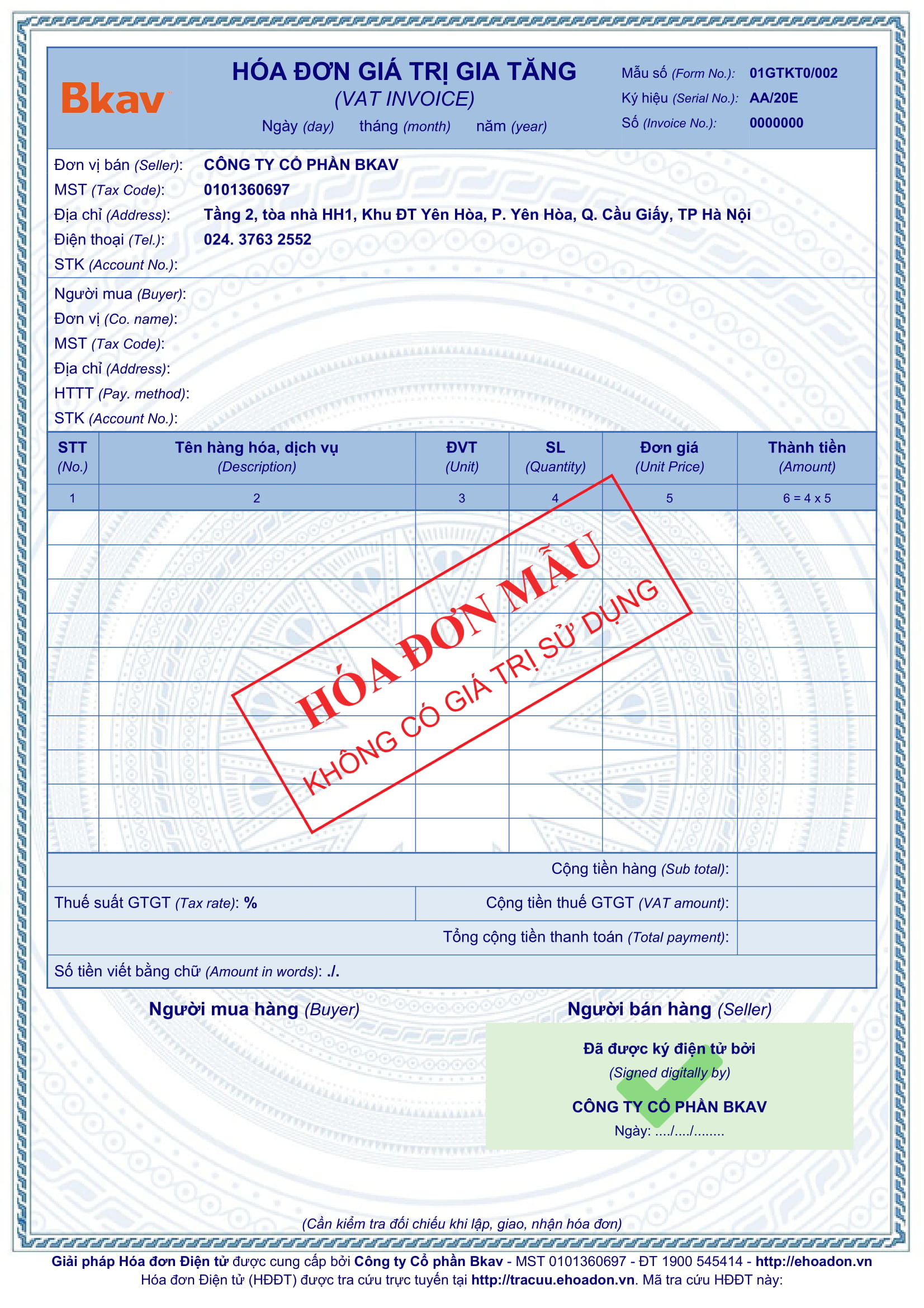 Mẫu hóa đơn 1.000.000đ